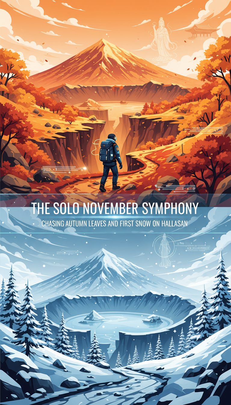 11월의 한라산은 가을 단풍의 생생한 색조가 겨울 첫눈의 징후에 자리를 내어주는 극명한 대비의 풍경을 선사합니다. 이 시기는 상쾌하게 시원한 공기, 사색에 잠기기 좋은 고요한 길, 그리고 붉은색과 흰색의 시각적으로 놀라운 병치가 독특하게 어우러집니다. 이 경험은 "대비의 교향곡"이자 "시각적 시"로 묘사되며, 홀로 모험하는 이들에게 산의 도전을 받아들이고 그 덧없는 아름다움을 만끽하도록 격려합니다.